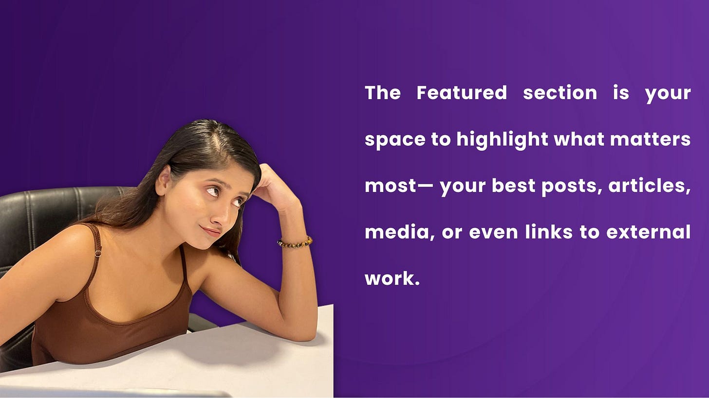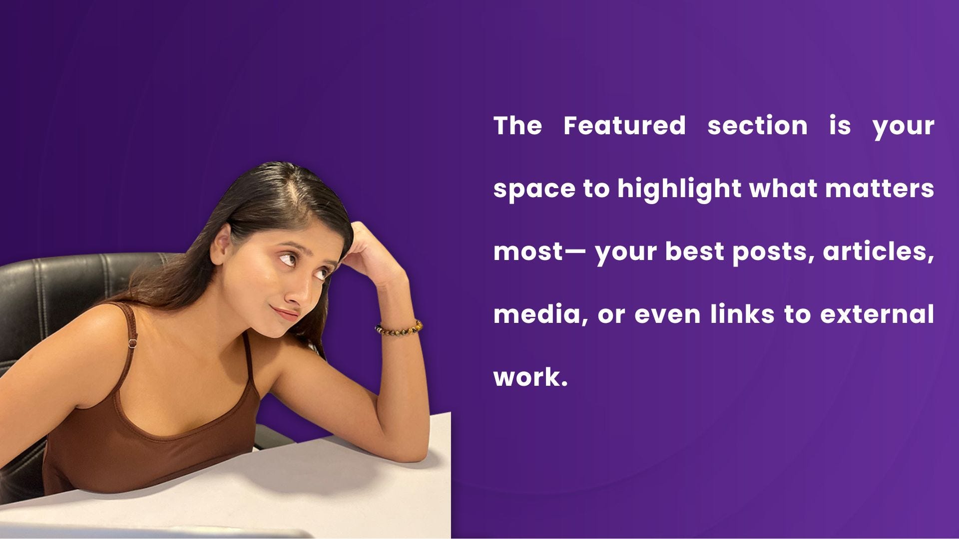 You feature section is like a mini portfolio on your profile, where you get to shine by showcasing your achievements, expertise, and what you’re passionate about.